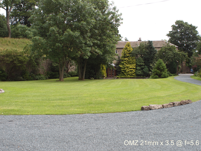 21mm x 3.5: Again difficult to focus even with MF assist 10X; I used a magnifier on the LCD. No evidence of purple fringing. Sharpness is soft to reasonable. The result at f=3.5 is just as good as at 5.6 with no ghosting being perfectly usable wide open; the version at f=11 is only slightly softer and MAY be diffraction setting in. As with all OMZ W/A lenses because of the 2X crop factor the equivalent focal length is disappointing - a 42mm f=3.5 is nothing special making a slow 'standard' lens; quite useable throughout aperture range to f=11 when it starts to soften.