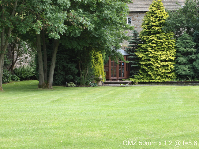 50mm x 1.2: Focus easy with MF assist 10X. No areas to check for purple fringing. Sharpness is slightly down on the previous examples but not that much; it is still reasonably sharp at f=5.6. The result at f=1.2 is much softer and is spoiled by a lot of ghosting; the version at f=11 is equal to the 5.6 result with no evidence of diffraction. Because of the 2X crop factor the EFL is 100mm suggesting this lens might make a fast portrait lens; but the results wide open are ghosted and only improve at f=2.0 so there is little adavantage over the slower versions. It is therefore not really usable wide open but OK when stopped down and is quite sharp to about f=11.