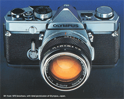 INTRODUCTION: As Editor of Quest, the Magazine of The Olympus Circle, it falls to me to write an article for each issue. This is from Quest 2, December 2003 and compares and contrasts the 1972 Olympus M1 with the new E-1 announced in 2003. ~~~~~ Early in 2003 Olympus announced their first true SLR digital camera. It is now available in the UK and has been enthusiastically reviewed by several journals and magazines. Its announcement has been much lauded and is being compared to the introduction of the M (OM) system back in 1972. If true this new camera could shape the future for Olympus Japan in much the same way as the development of the viewfinder Pen from 1959 to 1971 which then took the company’s stellar designer to what some would say his greatest achievement – OM. Does the choice of E1 as a designation subtlety underline the aspirations borne by the new product? If this is indeed a truly momentous event it seems churlish not to devote this quarters Centrepiece to both the E1 and M1, cameras now separated by 31 years of technological advances, and perhaps reach a view as to the E1’s likely worthiness to assume the mantle of OM. However, is it right to think that this is corporate intent? Might this just be a consequence of development that is inevitable? The OM system was deleted from the company’s products in 2002 and production of silver halide cameras now rests in the development of various compact ranges including the very capable Mju series. The oddly named ‘OM’ 2000, a camera not made by Olympus but badged by the company, was no contender for the mantle of true OM, and its short-lived production ceased in 2001. From the apparent reluctance to develop a competitive auto-focus SLR in the late 80’s and rumours of OM5 to the first whispers that OM was to be phased out, many commentators believed Olympus had lost its way. Whether this is connected to the retirement of Yoshihisa Maitani in the early 90’s is a matter for conjecture, but the camera division of the company seemed rudderless for quite some time. Of course this might be due to a whole host of other issues like the development costs, world recession, competition etc., the self same set of challenges the company presented Mr Maitani in 1959. | |