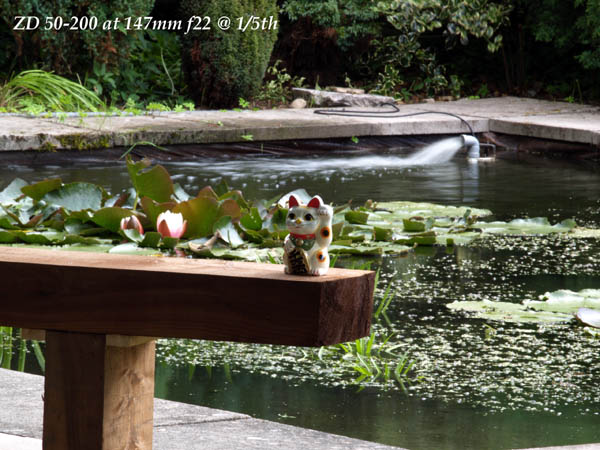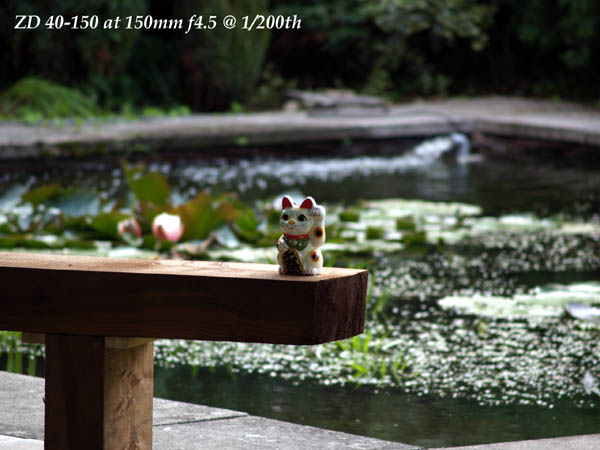 OPINION Compare the way this Maneki Neko or 'beckoning cat' either disappears into the fussy background or leaps out at the viewer. This effect is directly attributable to lens bokeh. The larger the aperture available, the better the effect. Judge for yourself. The ZD 50-200 has it by miles.