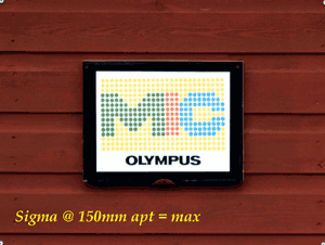 COMMENTS: At 200mm the ZD 50-200 is again the winner. Its better optical construction gives it the edge for all my parameters. Remember this test is at a few score feet from the target only. The Sigma is extremely good for a budget offering but it cannot compete with the more expensive ZD.