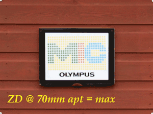 COMMENTS: At 70mm there is not much difference between both ZD's. While the Sigma is not giving as good edge definition it is slightly better than the ZD's on colour. All three are starting to sharpen, improve on contrast and improve edge definition. On balance I put the ZD 40-150 marginally ahead though there's very little in it.
