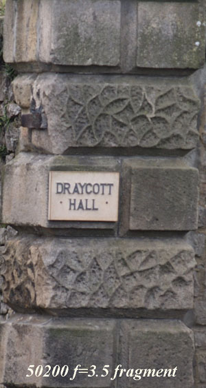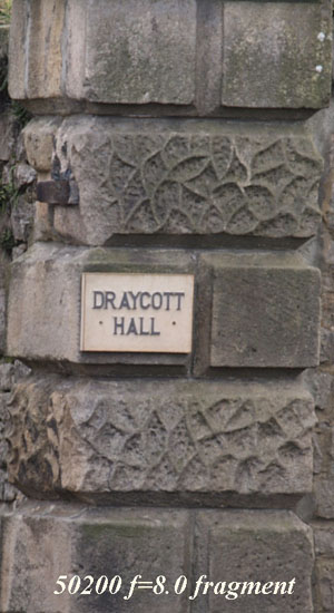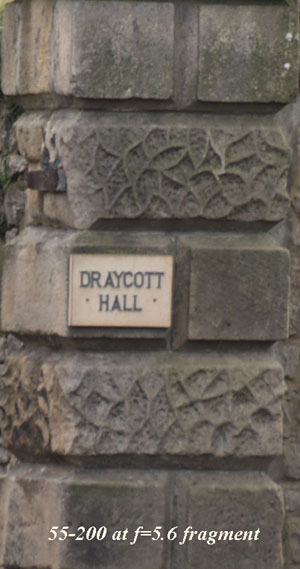 Above are two crops from the originals. Notice how the crop from the f=8 fragment sharpens up from the one wide open. It's definately sharper, not dramatically but enough to be quite evident. Even so this is an excellent performance from a 'budget' lens. To get maximum resolution stop down a notch or two although, even wide open this zoom will give you good results if you are struggling for light.