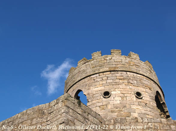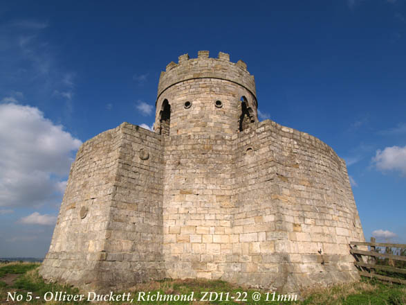 I'm within about 3 feet of the of the Duckett walls. At this close proximity the ZD11-22 at 11mm easily captures the whole Duckett. I could get closer and still get it all in, but the ground is especially uneven here to try and keep the camera near horizontal and plumb. (No-one said it was easy!) I'm very pleased with this lens' capability; more so - I'm impressed. The distortion effect is what attracts many people to wide-angles. Using this inherent distortion you can exaggerate it to produce some dramatic effects. Now satisfied with the first part of my field test - well, I'm in a field aren't I? - I see what effects I can make. Moving to within a foot of the Duckett wall and tilting the camera well back I frame this next shot: