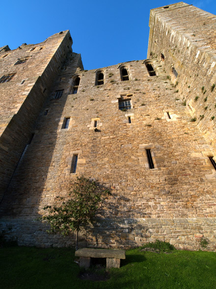 Walking to the rear of the castle (the entrance elevation) we get a whole new perspective. From this side it doesn't look anywhere near as imposing as from the front. Of course that's exactly how it was supposed to work; appearing invulnerable from a frontal attack. This first shot is with the lens set at 7mm: