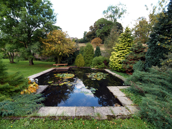 Exif: ZD 7-14mm, FL=7mm, f=4.5, 1/60th, Mode = A, compensation nil ___________________________________________________________________ Formal pond. After a spectacular summer of magnificent lilies it's sad to see the pond dying back as winter approaches. Notice the areas of PF against the white sky.