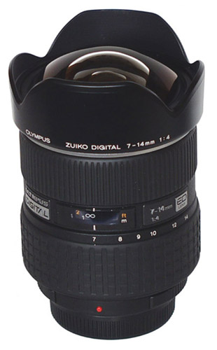 FIRST IMPRESSIONS: My ZD 7-14mm arrives and I eargerly unpack it. Wow, says I, and wow again! This is some meaty piece of optical engineering. Yes, I've seen the photo's of the lens but nothing quite prepares you for the reality. It is much bigger than I'd anticipated and substantial to the point of being over heavy. A huge lens barrel that is finished just before the hood with a ring of polished stainless steel that harks back to the early days of 'Silver Nose' OMZ's. This bright ring is now used to denote Olympus Super High Grade Lenses. The barrel has the now customary ZD square-cut finished rubber zoom grip ring and the manual focus ring is deeper and sports the usual ribbed grip.