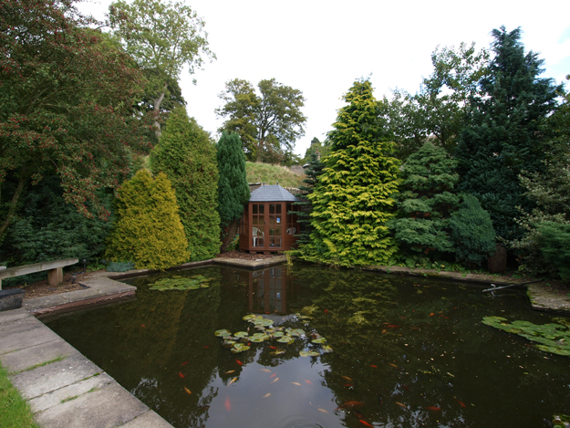 STANDARD TEST: I set up the tripod to do some test shots against one of my normal targets - my summerhouse with an Olympus advert stuck in the window! Distance from tripod to front of summerhouse is 35 feet. For all sessions of testing I use the E-3 with these base settings: A mode, ESP, ISO = 100, WB AUTO, NR= OFF, S-AF, File = L Super Fine JPG, COMPENSATION = 0; tripod mounted and shutter tripped with RC-C1 (Generic version of RM1) remote.
