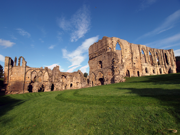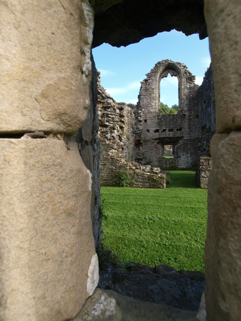 FIELD EXAMPLES: In my quest for samples for your perusal, I decide to have a trip to Easby Abbey, a ruined 14th century monastery, followed by a short detour through Richmond to 'The Batts', a waterfall and rocky outcrop in the path of the River Swale. The morning is pretty clear and bright with wondeful blue skies but this lasts only 35 minutes before it dulls in with heavy cloud cover. Damned British weather....