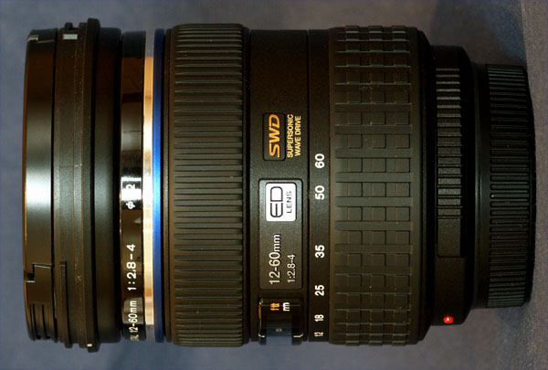 The ZD 12-60mm SWD when combined with new E-3 offers vastly improved AF computation and lens-body communication rates. SWD motors provide near silent but ultra-fast focusing speed of around 170 ms. All SWD lens' are manufactured in Japan at the companies Tatsuno Plant that has some of the worlds most sophisticated optical production technology. ZD 12-60mm - SPECIFICATION: Focal length: 12mm - 60mm Focal length: (equiv. 35mm) 24mm - 120mm Lens configuration: 14 elements in 10 groups Aspherical glass elements: 2 Aspherical glass elements 1 Aspherical ED element ED lens: 2 ED glass elements 1 super ED glass elements Lens mechanism: Inner focus with floating mechanism Angle of View: 84 - 20 ° Closest focusing distance: 0.25 m Maximum image magnification: 0.28 x / 0.56 x Number of aperture blades: 7 Circular aperture diaphragm for natural background blurring Maximum aperture: 1:2.8 - 4.0 Minimum aperture: 1:22 Filter diamater: 72 mm Dimensions: 79.5 mm Ø, 98.5 mm Weight: 575 g Compatible to Tele converter EC-14: Yes Compatible to Extension tube EX-25: Yes Lens Cap: LC-72B (72mm) Lens Hood: LH-75B SWD12-60ED FIRST IMPRESSIONS: The first thing I notice about the lens is that it is indeed made in Japan. Secondly, it has what appears to be a circular recycling icon with 10 (not 10%) inside. I have not been able to ascertain precisely what this means. Ergonomics: This is a meaty lens; heavy; chunky. Its build looks the same as all the Pro-grade lenses and its size is quite a bit bigger than the ZD14-54mm and only slightly larger that the ZD11-22mm though it weighs 15% (90g) more than the latter. It has two more elements than the ZD11-22 and I doubt these make up the total weight difference so I suspect the SWD motor is partly responsible. The major aesthetic difference is the addition of an extra 'ring' immediately behind the manual focus ring but before the twin chrome and blue ring, with lens information engraved around it. This will account for all the 6mm additional length over the ZD11-22mm. And of course there's a golden embossed badge declaring SWD on the flat ring containing the distance scale window. To me it feels the same as the other Pro-grade issues though I've heard from some commentators that it feels a little plasticky. As far as I know it is made from the same mixture of metal (brass) and engineering plastic composites as the other pro-grade lenses. I'm delighted to see the centre-pinch front cap and wish these style caps were made available for the entire ZD range of lenses. I'd also like to see Olympus spend some design effort in producing a lens hood that can be used in association with polarisers. Zoom & manual rings: Once mounted on the E-3 I try the zoom. It is no where near as smooth and silky as the ZD14-54 and when zooming in and out can be heard to make some weird groans, squeaks and clunks that I assume is the inter-reaction with the mechanical part of the SWD lens motor. However, the fact that it has a mechanical interface rather than FBW is a distinct advantage - increased noises are a small price to pay. My only concern is the almost grittily stiff, non-silky-smooth zoom ring. The zoom throw is 90 degrees and can just about be accommodated in one sweep of the wrist. As with all other Olympus digital lenses zoom movement (far to near) is anti-clockwise and unlike its FBW siblings that can be altered, the manual focus is only anti-clockwise. Having a mechanical interface also means that the camera need not be switched on to use the manual focus ring that might be advantageous to certain users. On other E-Bodies: The SWD12-60mm works perfectly satisfactorily on non-E3 bodies but is (obviously) not quite as fast as when on the E-3 as these bodies do not have improved internal processing/communications. On the E-400 the new SWD12-60mm is decidedly faster than the ZD14-54mm and on the E-330 though the difference is not quite as dramatic it is still a welcome improvement. On the E-400 its performance is not that far behind its speed when when on the E-3, so perhaps my comments about SWD technology and strategy above are a tad unfair. Unfortunately I have no means of measuring AF speed. Firmware: Whilst mounted on the E-3 I check the lens firmware set; it is version 1.0. I think I will leave it at 1.0 to see if my tests produce any issues; that way I can check the effectiveness of the firmware upgrade. According to Olympus Japan there is a firmware update for ZUIKO DIGITAL ED 12-60mm F2.8-4.0 SWD - Improved focusing precision on distant subjects when using the C-AF (continuous AF) mode. (Firmware version 1.1) Oil & grease: Before moving on I'd suggest that purchasers of the lens check the cleanliness of the front element before using. The front element on my brand new example was covered in oil/grease marks (22 in all) and not fingerprints, that took about 10 minutes to satisfactorily clean off. The marks looked like factory based contamination. Why this should be so I have no idea. I use only breath and a quality lens cloth on any lens. COMPARED TO ZD 14-54mm (E-1 standard zoom): The new lens offers a better focal length spread at both ends than its elder sibling, in fact an additional 12 degrees of cover. But this comes with some penalty. Compared to the ZD14-54 the new lens is 17% larger in volume and weighs 575g which is 25% heavier. It is 10mm longer and 6mm wider with the filter increased to 72mm from 67mm. The combination of E-3 and ZD12-60mm weighs in at 1.4kg; the older combination of E-1 + ZD14-54mm weighed 1.1kg. Size and weight is one of the various elements of a camera that the user needs reach a judgement about. Personally the new E-3 kit is marginally too heavy for me and whilst this will not stop me using it, this rather detracts from the innate enjoyment of doing so. The SWD12-60mm is slightly slower at the 60mm long end (f=4) and because its focal length spread is greater than the ZD14-54 it loses its brightness earlier when progressing across its focal l