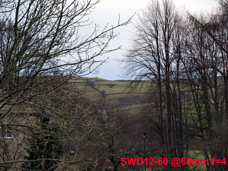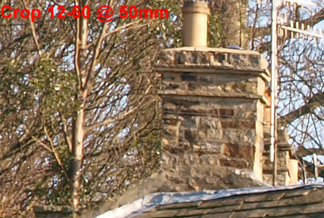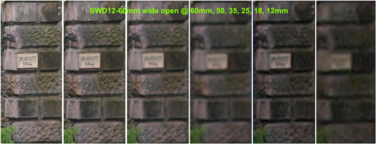 Observations on SET 1: Looking across the crops from the SWD12-60mm wide open there seems to be a glitch of some sort at 25mm. Other than that these shots show the lens capable of resolving the house sign at 60mm, 50mm and 35mm but not any wider. This is pretty typical for this test. Looking across the crops from the ZD14-54mm wide open there is a consistent loss of detail as the lens is zoomed out with no particular focal length suffering. The lens will resolve the house sign at 54mm, 50mm and 35mm but not any wider. The best result is from the SWD12-60mm lens at 60mm - what you might expect, with the ZD14-54mm at 54mm a close second. When the focal lengths equal out on each lens there's markedly better performance from the SWD12-60mm at 18mm. Other than that there's little to choose between the results - each lens slightly being better or slightly worse that the other across the range of focal lengths. There's not much in it at all. SET 2: