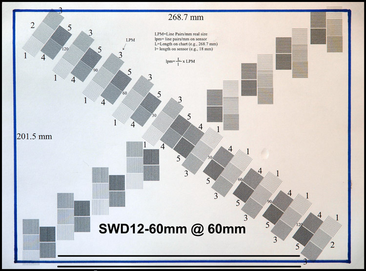 CRITIQUE: I've got little to add to the above results and comments. Yes, the SWD12-60mm suffers from barrel at its widest, but are we really surprised considering (a) its wide capabilities, (b) it is a zoom and (c) it is the wide end of a 5X zoom. Though not shown I tested the lens at 35mm also and was pleased to see the amount of barrel diminish significantly, to the point where its effect would hardly be noticed even in architectural work. The result at the long end is most satisfactory.