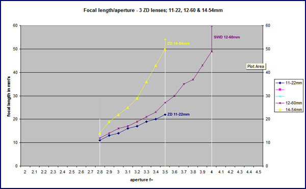 ZD 12-60mm ED KIT LENS: I've prepared an information chart showing lens architecture, MTF charts and DofF scales for download here. We've been conditioned to generally associate the new ZD12-60mm lens with the E-3 as its 'kit' lens, much the same as the ZD14-54 was the 'kit' lens of the old E-1. Of course the E-3 can be used with any 4/3rds lens. When used on the E-3 the new SWD generation of lenses offers the worlds fastest AF system so it seems fitting that Olympus manufactures this new SWD lens especially for the new body. At time of writing there are 3 SWD lenses avaiable/about to be available; SWD12-60ED, SWD50-200ED, SWD14-35ED. I have mixed views on this strategy from Olympus. OK, I accept the old AF system needed improvement and this new SWD technology offers much, but the previous generation of lenses on the E-3 work much faster - in fact not 'that' much slower than the SWD's. Maybe I'm cynical, but I can't help think this move is simply another method of selling us more lenses, some of which we already have! Certainly, comparing the AF speeds of the ZD14-54 & SWD12-60 on the E-3 body the difference in speed is hardly critical and for the majority of users probably of no concern.