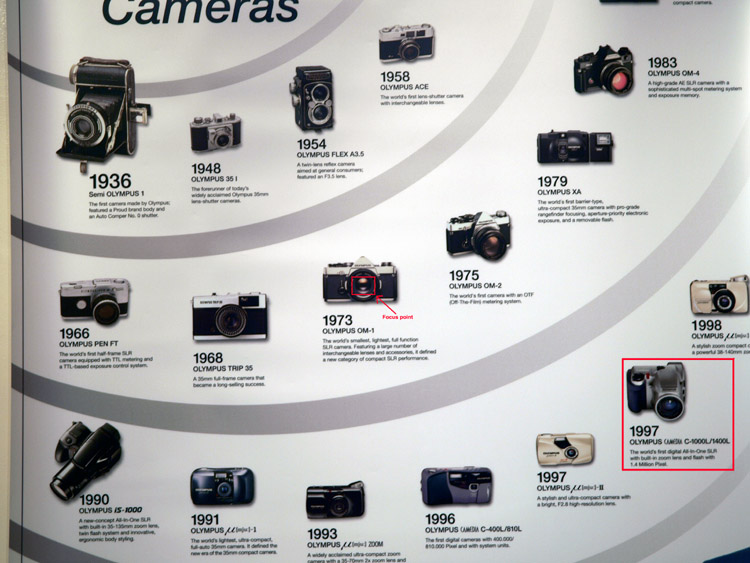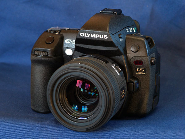 IN THE VIEWFINDER: By far the dominating feature of the E-3 body is the new viewfinder optical arrangements. The prism hump is huge compared to any other Olympus DSLR and it needs to be to house the new viewing system. If the E-1 was not berated for a rather small viewfinder, certainly all models that followed were. Personally I had no issue with the E-1 VF and could manage to manually focus my OMZ lenses (above 40mm) with it. But the later systems that relied on Porro prism and mirror based prisms were slightly smaller and a tad more dismal, leading to the accusation that their VF's were tiny, dark and tunnel-like. I'd refute this description as being over the top, but I could see where the accusers were coming from. It was plain the design engineers needed to address this problem. The E-1 has a traditional prism but the viewfinder image is governed by both format and sensor. Somehow the engineers had to increase the size of the viewfinder image within existing constraints. It was always thought that magnifying the viewfinder image would simply make it proportionately darker; that's the nature of the physics involved. Their solution relied on enhancing traditional prism type optics by such a degree that applying some magnification does NOT degrade image brightness. They have increased the apparent size of the 4/3rds sensor format view without losing any brightness or clarity. This has been achieved by using high refractive index glass with a highly reflective silver coating. The eyepiece also uses glass lenses rather than optical plastic. All the lenses are surface coated to maintain brightness. The VF gives a 100% view but imposes a magnification of 1:1.5. It is a revelation.