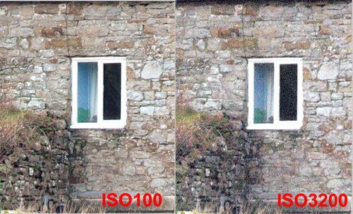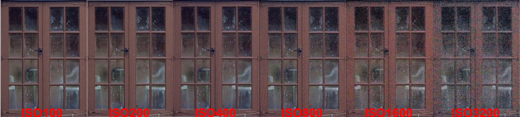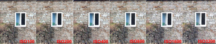 CRITIQUE (INSIDE): Yes, there is noise starting at around ISO1000 but it is well controlled. ISO1600 is perfectly usable though had I compensated for the overexposure there would have been slightly more noise, still, this is a good result. The same goes for top ISO result and the level and type of noise are well within my acceptance tolerances but your opinion may differ. If you shoot RAW most developers have a reasonable NR feature in built; if you shoot jpg then software such as Noise Ninja (recommended) will easily remove this without impinging too much on resolution. There is a slight loss of detail but it is marginal. I have not sampled with NR set to ON. We know this in-camera processing is a compromise between lessening the impact of noise at the expense of sharpness, and inevitably sharpness loses out. From past experience and where required on noisy images, I use post processing NR software where the user has some input into how far this compromise is pushed. However, I've got to say that NR on the E-3 is very conservative and the best suggestion I can make is you test it yourself and reach a view. ISO PERFORMANCE TEST 2 OUTDOORS: METHOD: In test 2 (now the weather is a little better) I use the summerhouse as a target that is sufficiently far away to be focused at infinity. From this series of shots at ISO 100, 200, 400, 800, 1600, 3200 I crop out areas from the predominantly lightest and darkest areas of the image to see the impact of noise at each end of the spectrum. The images are straight from the camera with no post processing other than re-sizing and cropping. Camera settings: Aperture Priority, Picture Mode=Natural (with all at default), WB=Cloudy, f=5.6, shutter AE determined, Comp= -0.3, NR set to OFF. Again no adjustments were made to the series during shooting.