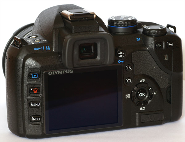 VIEWFINDER: The viewfinder is small but quite bright and offers a 95% coverage with the read-out information to the users right rather than underneath as with E-1 & E-3. Personally I do not like this arrangement but for many users it is of no consequence unless they wear glasses. The camera has an accurate dioptre adjustment and the finder is surrounded with a soft rubber eye-piece. The VF image can be slightly magnified by use of the (optional) ME-1 magnifier that offers a modest increase to x 1.2 size. There is no internal viewfinder shutter so if you need to block off the light entering the camera via its viewfinder you must use the daft piece of black plastic (EP-4) provided which slides into the same notches as the rubber eye-piece or magnifier. This 'shutter' is soon lost, I speak from experience. It is easily resolved with a hat brim/peak or other handy shading device. This is a minor gripe that pertains to most Olympus Prosumer DSLR cameras (not E-1, E-3 or E-330) and for most folks is a non-issue; however the fundamental problem of extraneous light entering the camera through the 'back-door' and skewing the metering is very real and should not be ignored.