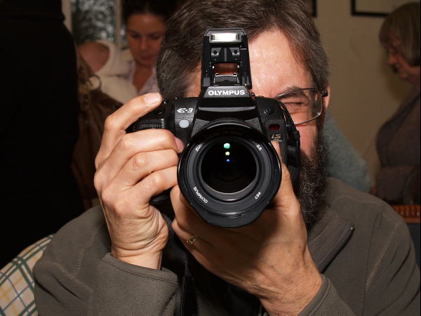 VF: the viewfinder is much bigger than the E1 VF but as bright after a side-by-side comparison with 11-22mm on both cameras. Interestingly, I felt that I had to 'explore' the E3 VF with my eye rather than just being able to see everything immediately, as with the smaller E1 VF. I suspect a better eye-cup (circular EP-1 style) allowing you to push your eye closer to the VF would be better than the existing square one. The overall impression of the VF was excellent, much closer to the film SLR experience. IS: the IS worked very well with the (old) 50-200, giving sharp images at 200mm@1/125s (although I only checked by zooming in on the rear screen); Steve has the images and should be able to provide pictures if necessary. AF: AF is good with the 30mm f1.4; I tried to get focus lock on black objects in a fairly dim room. It worked well: not astonishingly better than the E1 but quicker. I was disappointed not to be able to toggle between all the AF points using a rollerball or joystick to get changes in both dimensions; this might be possible via another procedure but I need to RTFM! LiveView is excellent, with a similar lag to the E330 in B mode. The only thing that I didn't like was not being able to pull the screen up behind the camera to act as a discreet waist-level VF. I rarely use LV A in the E330 for shots with moving subjects, so the lack of LV A in the E3 will not make much difference to me. Overall: a very good camera. Pending analysis of the images, I expect to be getting one next year, to replace the E330 and E1 for amateur event shooting, travel photography and documentary shooting, and occasional 'pro' work that is part of my job (publicity shots, product shots etc). Pete Monk.