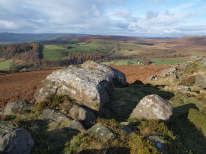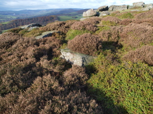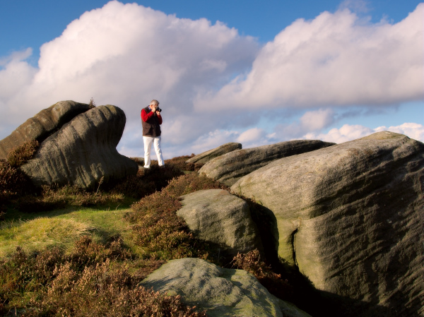 Unfortunately the weather took a turn for the worse and the few spots of rain turned to driving rain, but at least we were able to test the weather sealing of the E3 and 11-22 combination! Not too many photos were taken as the lens was covered in rain spots within seconds of being cleaned. We did get to try the 'Live View' function and with the camera on a tripod and the screen swung and tilted made the experience a positive one. It was useful to be able to assess the WB, exposure etc. without having to stoop and look in the viewfinder, the live histogram proved extremely useful. It was also good for the fact that the whole group could gather round and easily see the screen. I could see this as a useful tool for someone teaching on a photography course. We gave up on the ridge as not only had the rain become torrential but the mist came down and put an end to our fun! We retreated to my house to dry off and have a brew, we dried off the E3 and spent more time getting familiar with some more of its functions. We put on the 50-200 and with the lens fully zoomed out tested the IS ability, shooting at 1/80 handheld the E3 produced very sharp results, with the IS off the camera shake was very evident and couldn't produce a useable image. Later in the day the rain cleared up treating us to some wonderful light so we made our way to Carhead Rocks and Higger Tor above the village of Hathersage for more testing. I'd now had a couple of hours with the E3 and was really enjoying myself, the camera felt right at home in my hands. I was operating the controls without having to think too much. I really like the viewfinder; it looks huge and bright at the side of my E300, also having a 100% view meant I didn't end up with a shadow that intrudes into the edge of the frame. By the end of the day I felt that I'd been using the E3 for weeks not a few hours and felt reluctant handing it back!