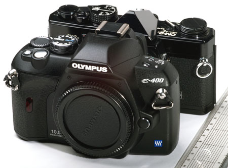 INTRODUCTION: Olympus quietly introduced the E-400 at PhotoKina in late 2006. While everyone was anxiously waiting for news of the E-1 replacement the company announced what is probably the foundation for the E-System for the next few years. And whilst boasting a new 10MP sensor, the E-400 is more than just another 4/3rds machine. It is the future. In this tiny DSLR Olympus are trialing a new level of miniaturisation; every component has been scaled down in an effort to reach one of their design goals, that of a digital OM. In a statement that both shocked and annoyed its followers, the company also announced the E-400 would only be available in Europe and would be specifically excluded from the home Japanese market and the strategically important US market. No satisfactory reason was given, but we were told that a new model based on the E-400 was already in late development and it would be this model that would be retailed throughout the world. There have been various rumours circulating about why the E-400 is limited to Europe, the most popular relating to the number of sensors being available. Personally I believe what Olympus hinted at; the E-400 would be trialed in Europe as a test-bed before the second wave in Spring 2007. It is very likely the E-410 with Live-View and possibly sensor based IS will be announced very soon. It has been a long held ambition of the design section of the camera division to repeat the sucess of their finest designer, Yoshihisa Maitani, by producing a true digital OM series. So have they done it? Can the new machine take on the OM mantle? This article is not a review of the new camera. I hope to do this later. All I propose to do here is look at the E-400 through OM tinted spectacles.