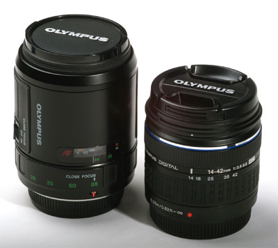 Comparing these lenses with anything from the OM range is going to be difficult. The 'standard' zoom (ZD 14-42) is equivalent to 28-84 and the nearest OM is the peculiar AF 28-85mm for the unpopular OM707 range. There is no OM equivalent to the ZD 40-150; this was poorly achieved in at least two zooms, the OMZ 28-48mm S with the OMZ 50-250 for the 50-150 bit! (The 50-250 Zoom is a rare lens).