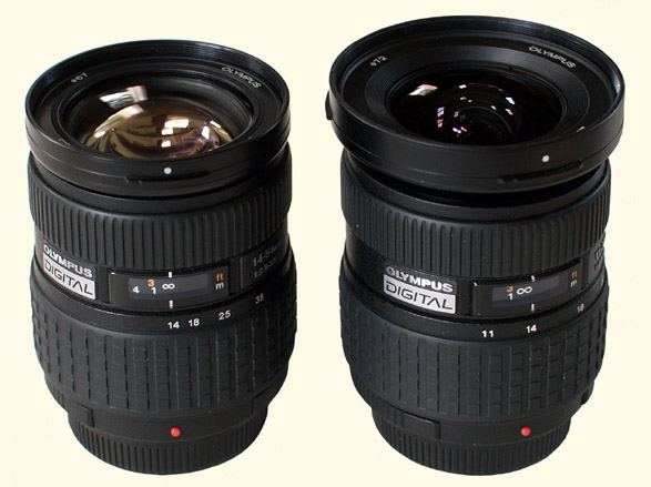 INTRODUCTION: There seems to be a disproportionate amount of overlap between the Zuiko Digital lenses 14-54 and 11-22. On the face of it anyone buying the ZD11-22mm is paying a whole lot of dosh for only 3mm of additional wide angle over that of the 'standard' ZD14-54mm zoom. [The angle of view for each lens stated by Olympus is (for 14-54) 75-23, and (for 11-22) 89-53. The simple maths therefore equates the 3mm of additional focal length to 14 degrees of angle of view]. Generally Olympus appears to plan their lens coverage quite carefully with little overlap between lenses which is surely the most attractive way to do it from the buyers point of view. So how come their first 'new' lens after the initial E-system introduction offerings was the widely overlapping ZD11-22mm? Perhaps the super high grade ZD7-14mm was especially difficult to design and manufacture to meet the demanding optical requirements of the 4/3rds sensor. Maybe Olympus had to compromise on the wide angle capability to bring about a wide angle zoom quickly enough to satisfy immediate demand. Perhaps Olympus could see that their expensive ZD7-14mm was not going to be attractive enough to coax large numbers into the 4/3rds fold. We just don't know. The ZD11-22mm is rumoured (by some) to be in its death throws after only 2 years of production. Though I hope this to be untrue, I don't know if this is fact or fiction. If true one might be tempted to conclude that someone, somewhere, is saying "I told you so". Wide angles are expensive to manufacture; high performance wide-angle zooms even more so. A direct cost comparison between the ZD14-54 and ZD11-22 demonstrates the latter is around 30% more expensive and the wider and specialised ZD7-14mm is 2x the cost of the ZD11-22 and 3x the ZD14-54. The ZD7-14's extra 4mm over the ZD11-22 is mightily expensive per millimeter of additional focal length. I'm not the only one to have tussled with the problem of what to buy for wide-angle needs, I read about folks in the same position many times. This article is in reponse to several requests from visitors to this site for an opinion.